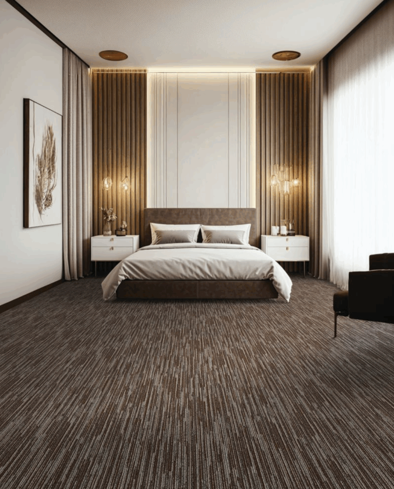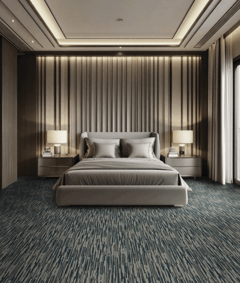 With soft , neutral earth tones that echo sand, stone, and sunlit fields, Whisper invites calm into hospitality spaces. Its subtle texture and linear flow create a grounded elegance—softening interiors and enveloping guests in an atmosphere of ease and serenity